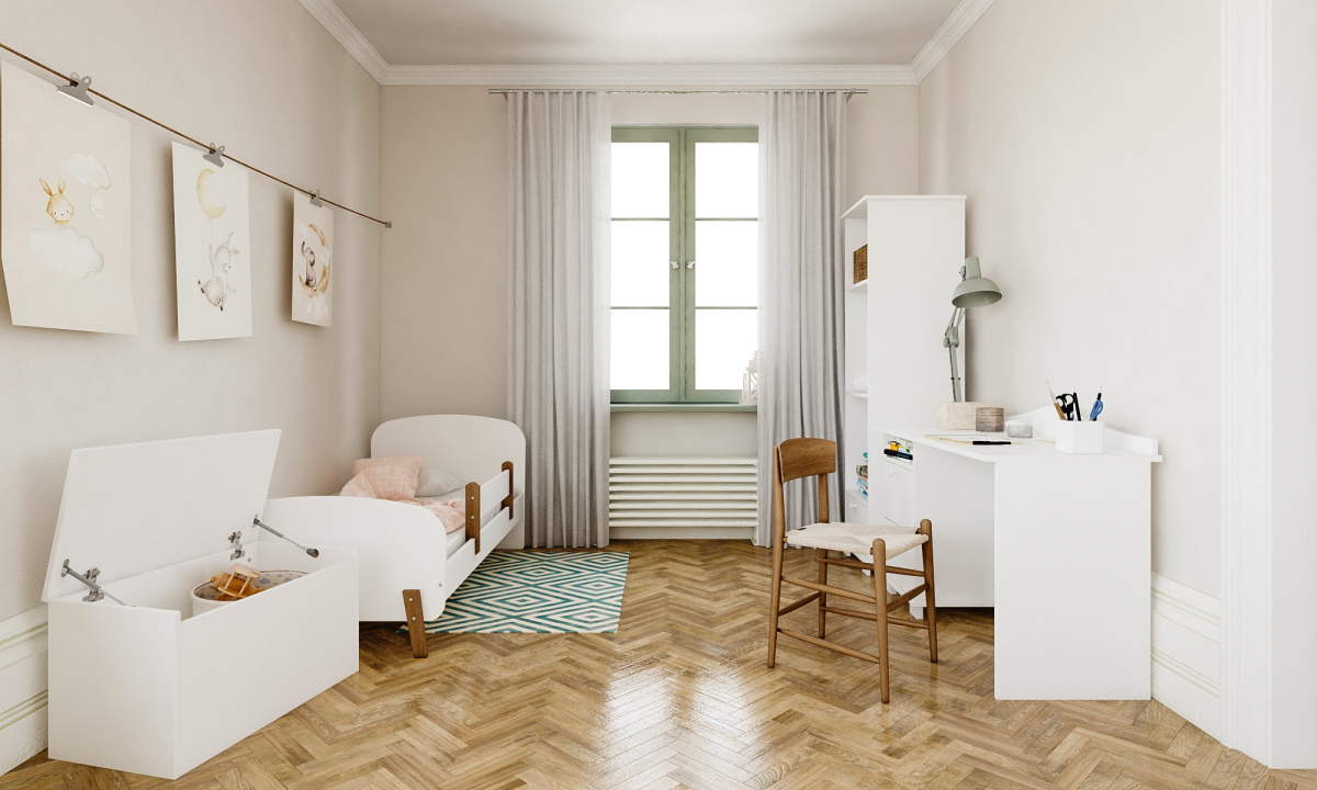 -Детская кровать в комплекте с съемными бортиками, которые обеспечат безопасный сон вашего ребенка.