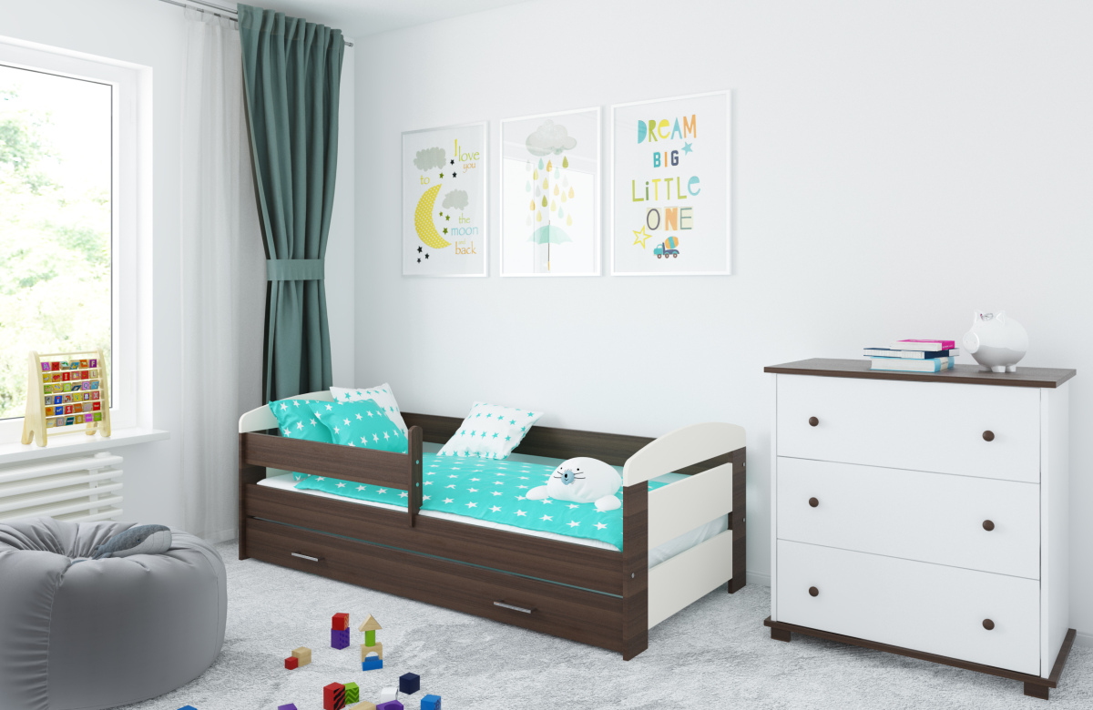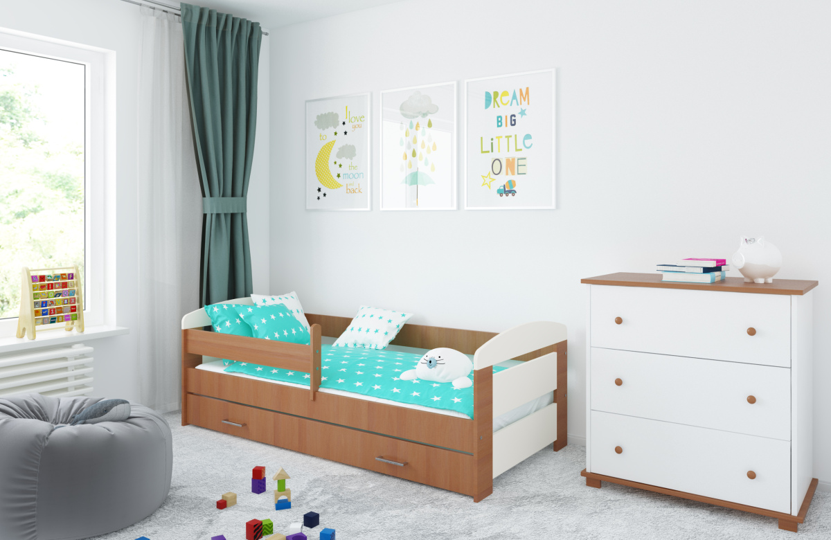 -Детская кровать в комплекте с съемными бортиками, которые обеспечат безопасный сон вашего ребенка. Бортики переставляются на любую сторону.