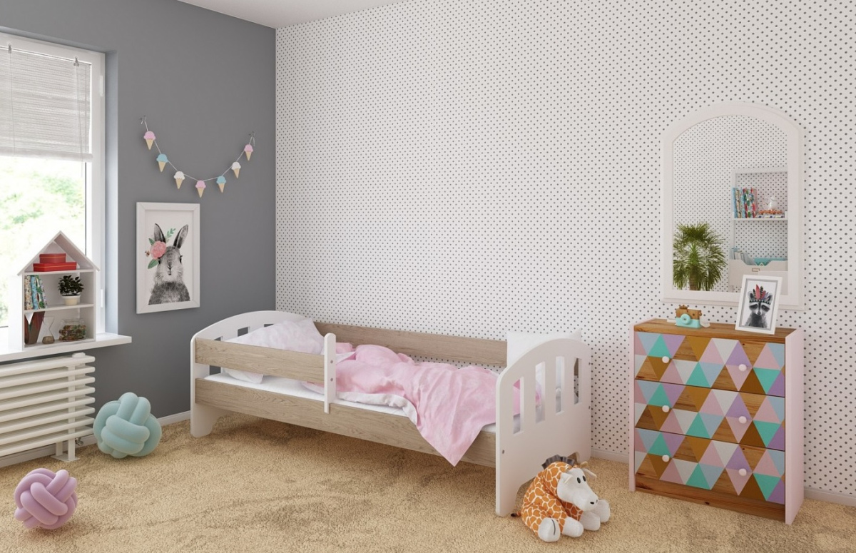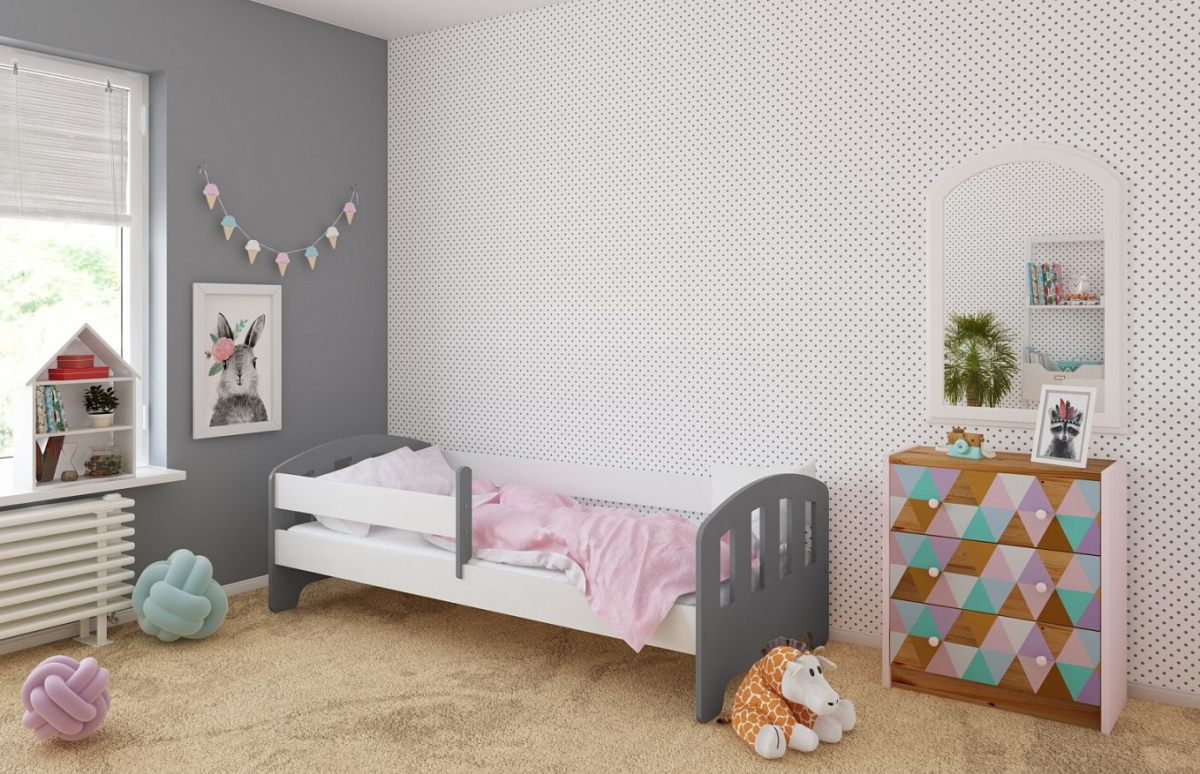 -Детская кровать в комплекте с съемными бортиками, которые обеспечат безопасный сон вашего ребенка. Бортики переставляются на любую сторону (длинный бортик по желанию может быть широким).