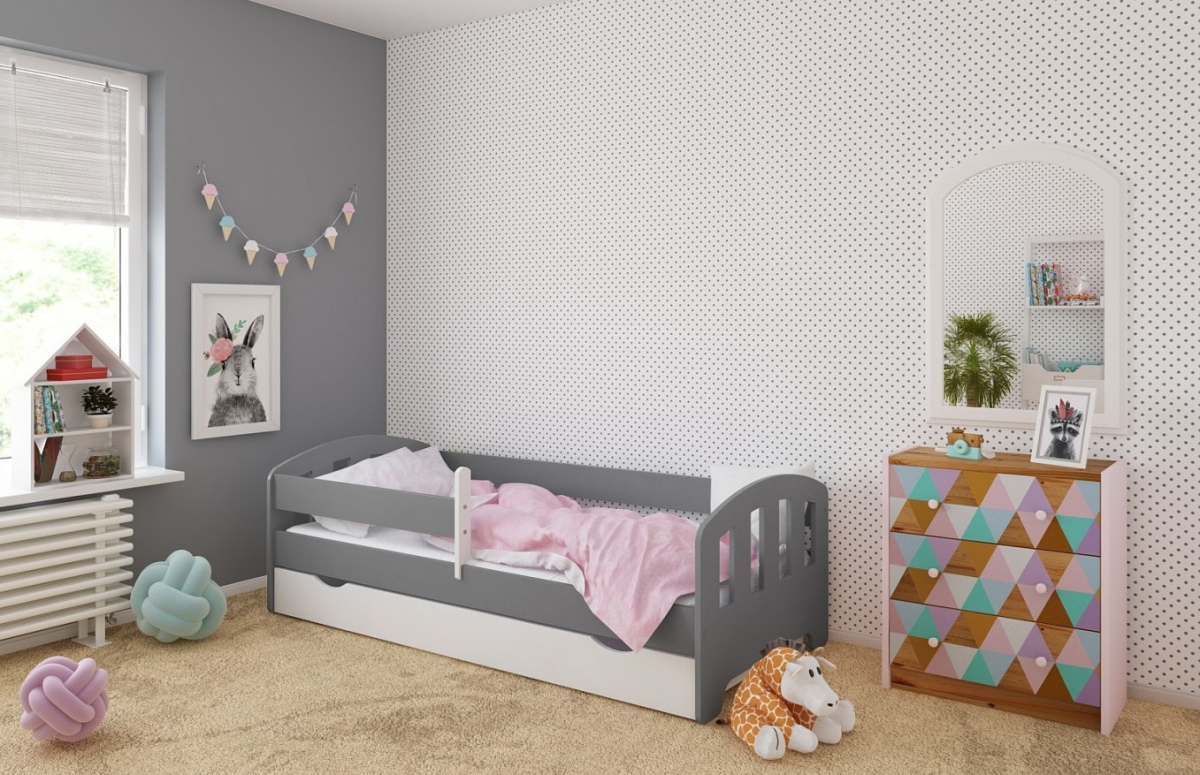 -Детская кровать в комплекте с съемными бортиками, которые обеспечат безопасный сон вашего ребенка. Бортики переставляются на любую сторону (длинный бортик по желанию может быть широким).