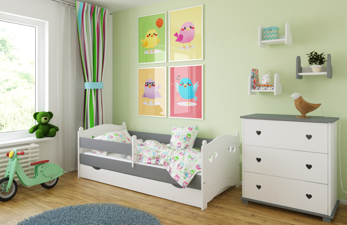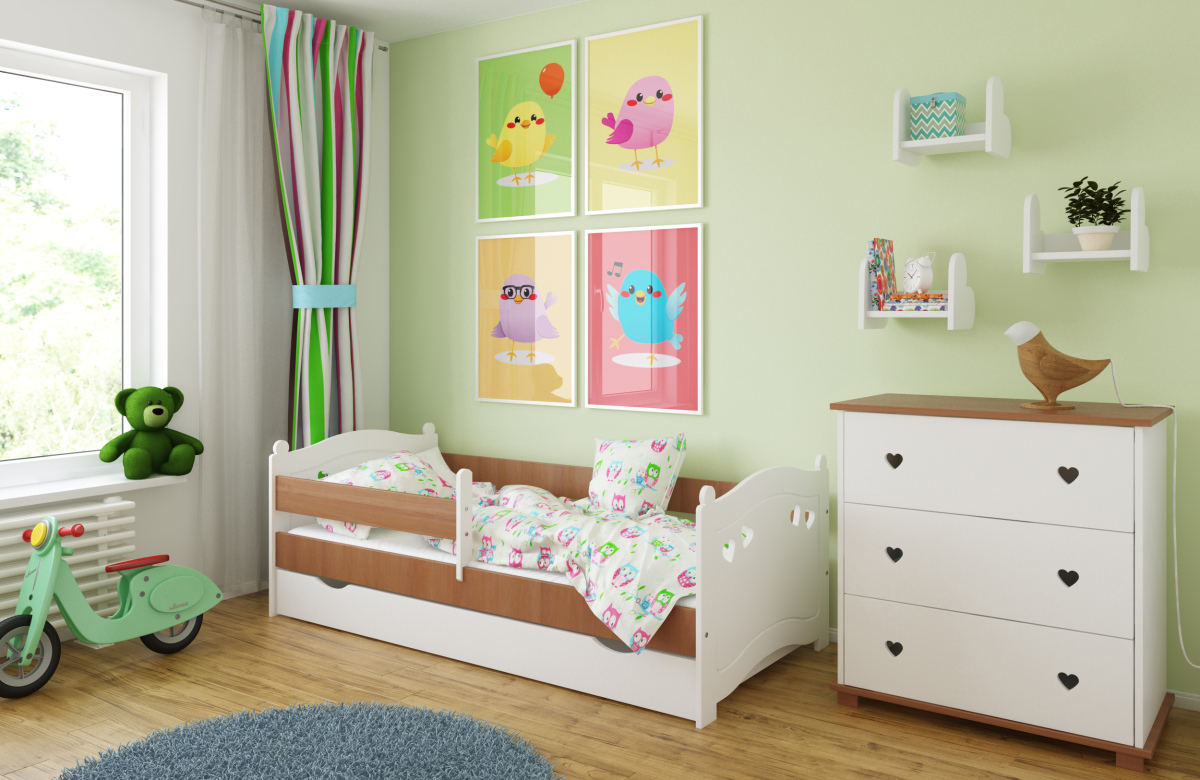 -Детская кровать в комплекте с съемными бортиками, которые обеспечат безопасный сон вашего ребенка. Бортики переставляются на любую сторону (длинный бортик по желанию может быть широким).