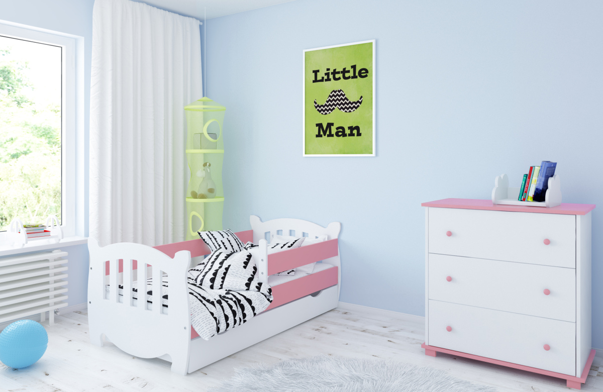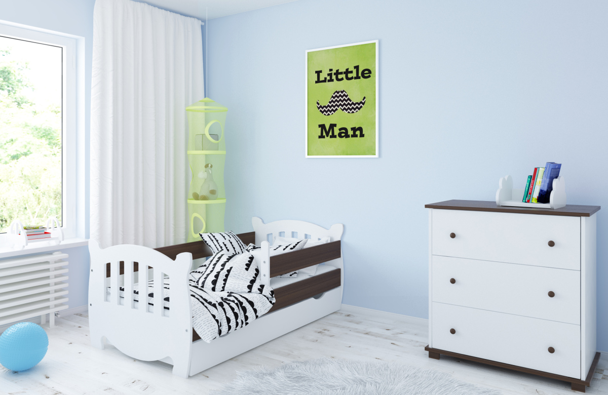 -Детская кровать в комплекте с съемными бортиками, которые обеспечат безопасный сон вашего ребенка. Бортики переставляются на любую сторону (длинный бортик по желанию может быть широким).