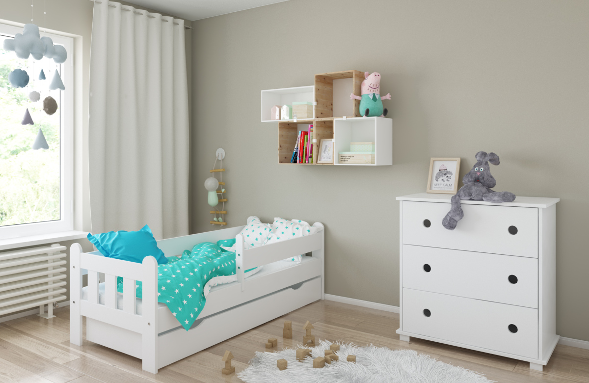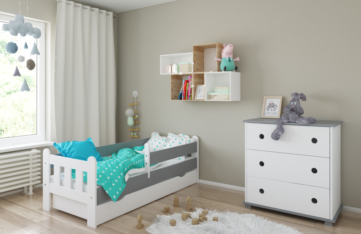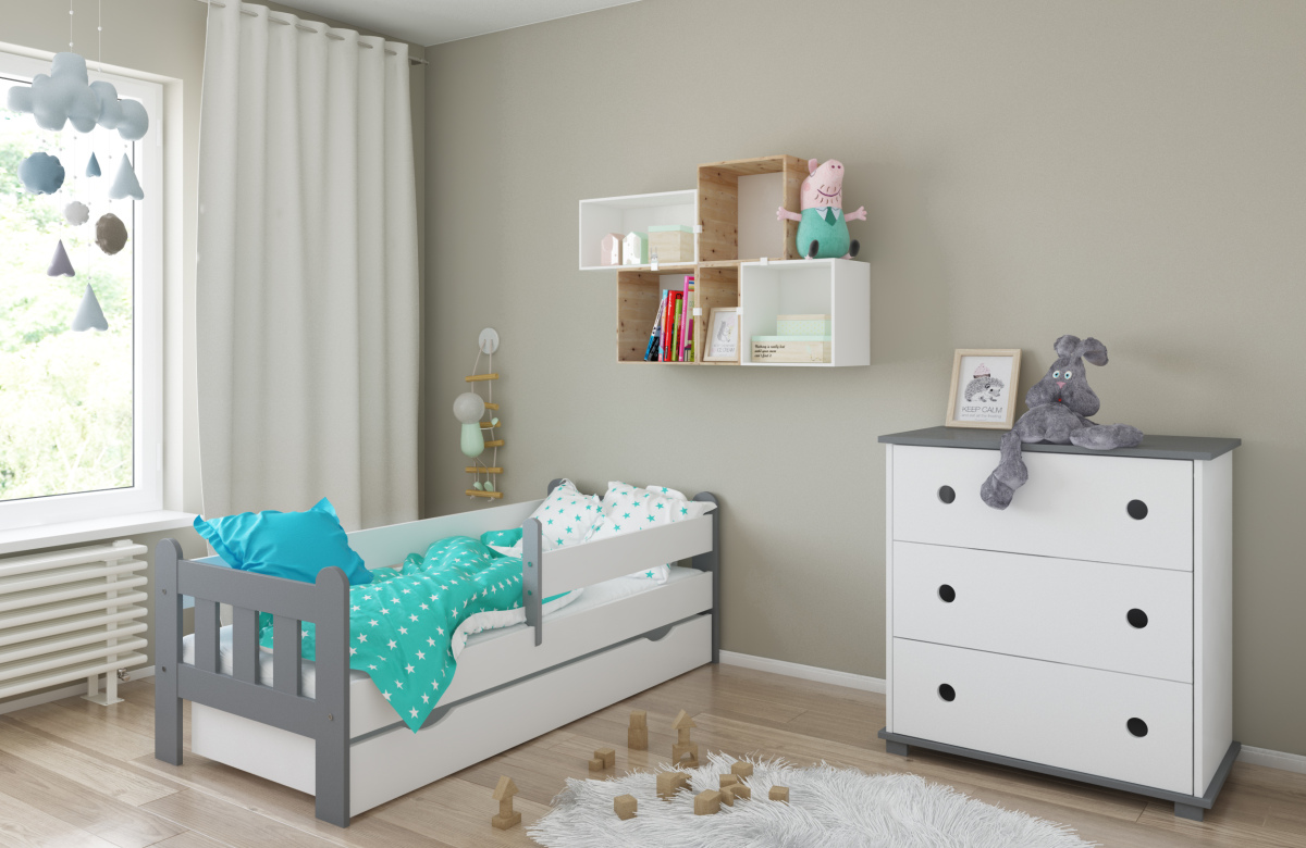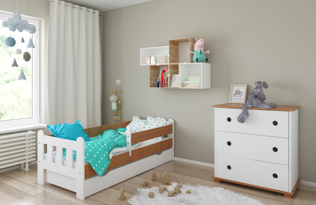 -Детская кровать в комплекте с съемными бортиками, которые обеспечат безопасный сон вашего ребенка. Бортики переставляются на любую сторону (длинный бортик по желанию может быть широким).