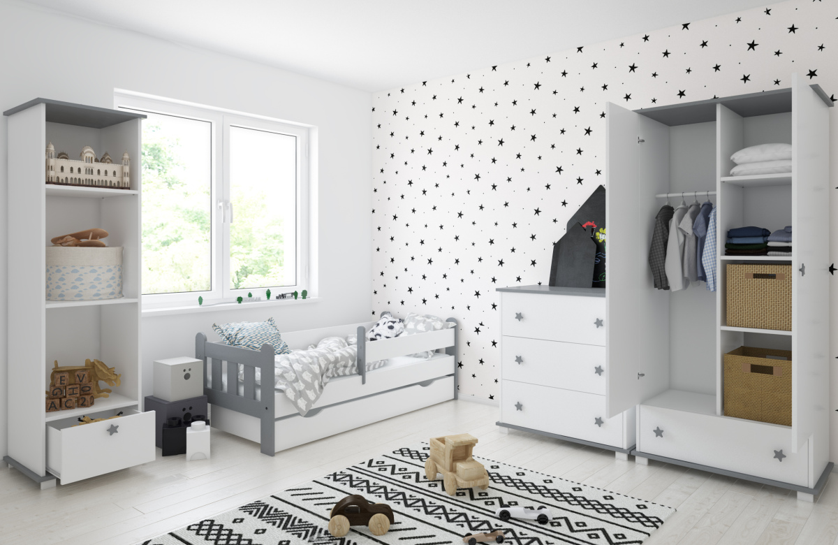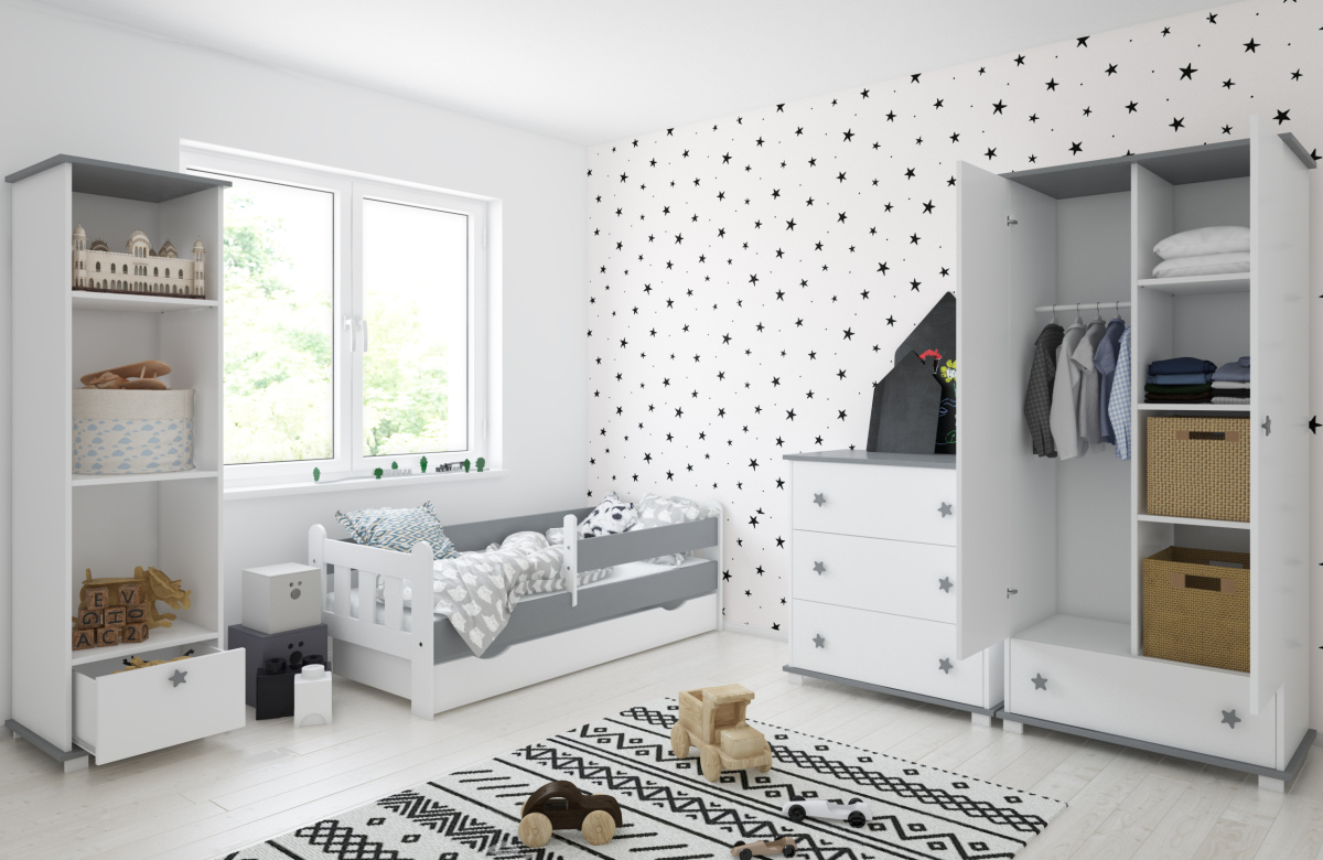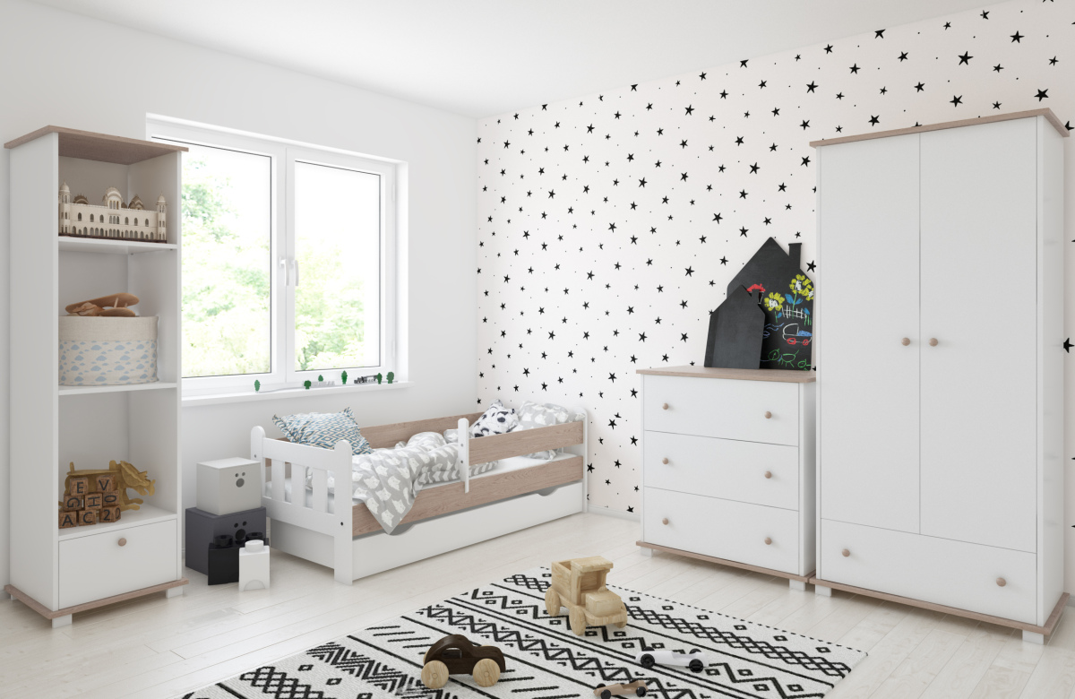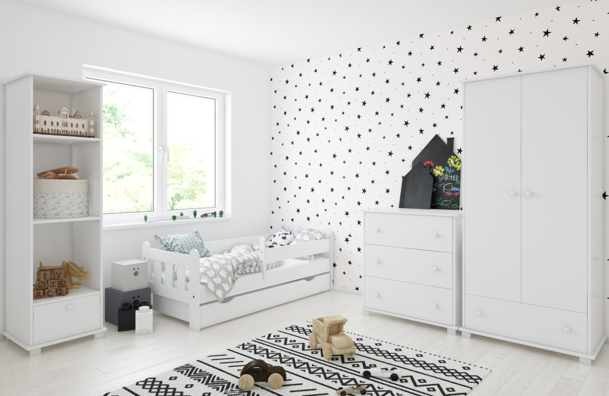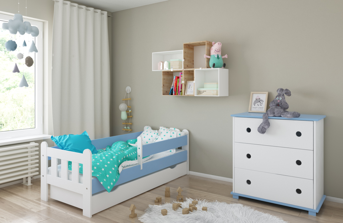 -Детская кровать в комплекте с съемными бортиками, которые обеспечат безопасный сон вашего ребенка. Бортики переставляются на любую сторону (длинный бортик по желанию может быть широким).