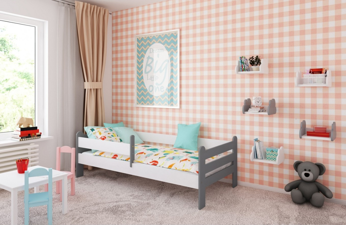 -Детская кровать в комплекте с съемными бортиками, которые обеспечат безопасный сон вашего ребенка. Бортики переставляются на любую сторону (длинный бортик по желанию может быть широким).