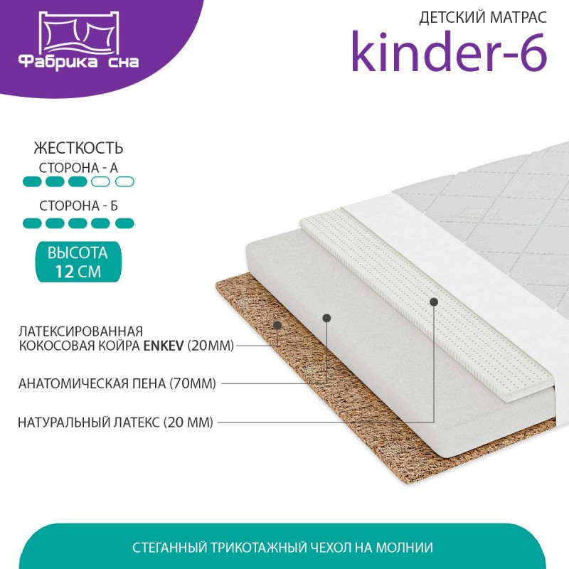 Сертифицированные детские матрасы Фабрика Сна модель Киндер-6 с размером спального места 160 х 80 см.